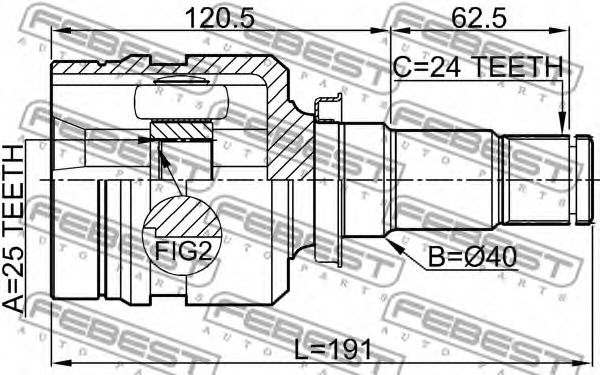 - Зубчатое соединение со стороны коробки: 25