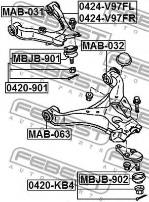 Рычаг независимой подвески колеса, подвеска колеса FEBEST 0424-V97FL