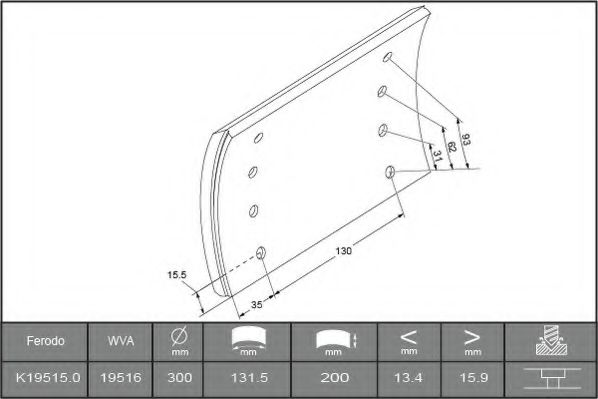 Комплект тормозных башмаков, барабанные тормоза FERODO K19515.0-F3662