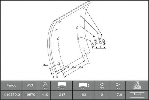 Комплект тормозных башмаков, барабанные тормоза FERODO K19579.0-F3539